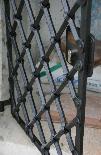 Geschmiedetes Gitter als Ersatz und in Anlehnung an das alte morsche Holzgitter.