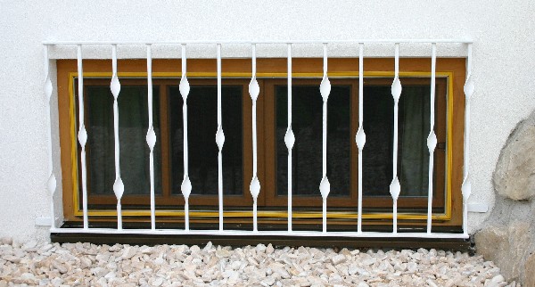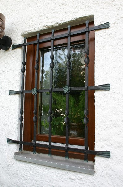 Geschmiedete Fenstergitter, feuerverzinkt und lackiert, links dezent koloriert.